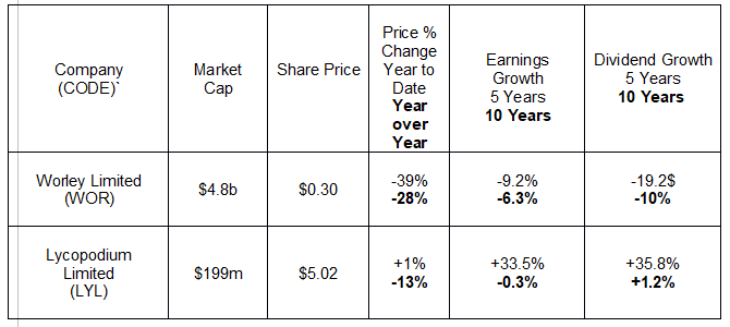 There are two engineering/consultancy firms of interest. One is a long-standing ASX blue chip – Worley Limited (WOR) better known as Worley Parsons, and more recent mid-cap Lycopodium Limited (LYL).