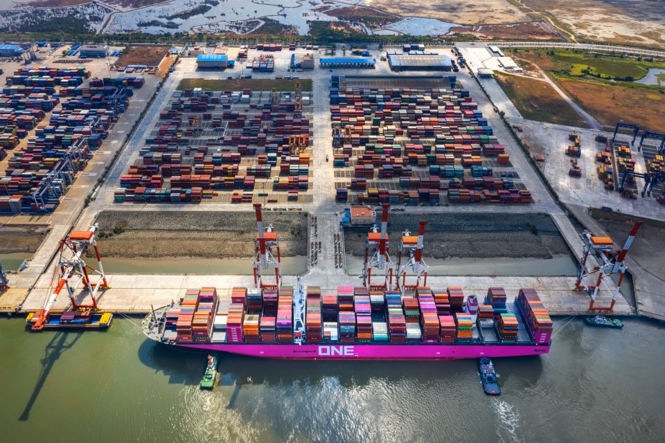 Top view aerial of International container port Tan Cang, Vietnam. Source: Shutterstock