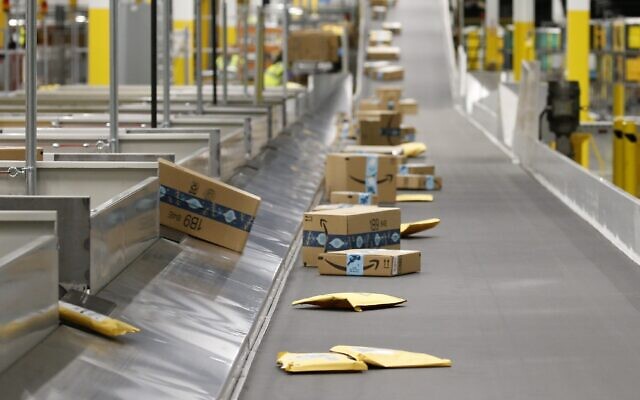 Illustrative: Amazon packages move along a conveyor at an Amazon warehouse facility in Goodyear, Arizona, on December 17, 2019. (AP Photo/Ross D. Franklin, File)