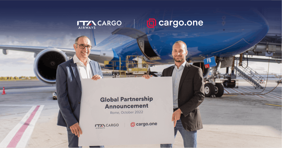 Berlin/Rome, October 19, 2022 – ITA Airways Cargo and cargo.one today announced a global partnership to bring the Italian national carrier’s cargo capacities to the leading managed marketplace for digital air cargo bookings. Thousands of freight forwarders worldwide will gain greatly improved access to ITA Airways Cargo’s capacities into and within Italy. Comprising its very first digital sales channel for air cargo, cargo.one will deliver the airline its industry-leading approach that ensures customers receive a superior and seamless digital booking experience. The launch further indicates cargo.one’s depth and diversity of supply options for forwarders.