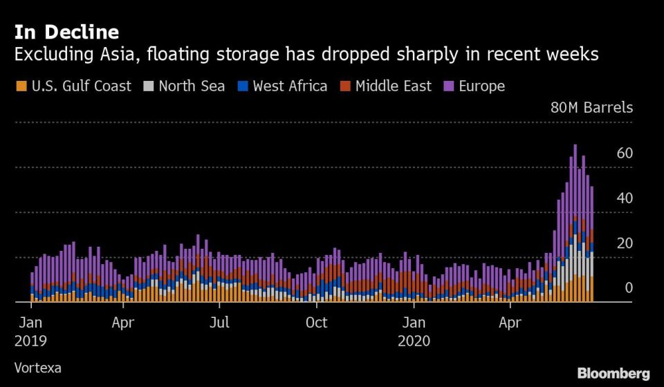 “The fallout from floating storage unwind is clear,” said Jonathan Chappell, an analyst focusing on marine transportation equities at Evercore ISI. “The return of capacity to the spot market, coupled with meeting oil demand with localized offshore stocks will create a pain trade for tanker markets, the duration of which will completely depend upon the pace of an oil demand recovery.”