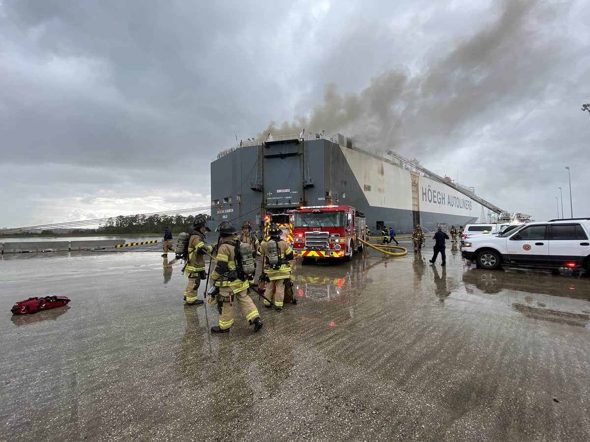 Höegh Autoliners said the fire broke out about 4 p.m. Thursday on the seventh deck of the vessel shortly after loading operations at Blount Island in Jacksonville, Florida, were completed.