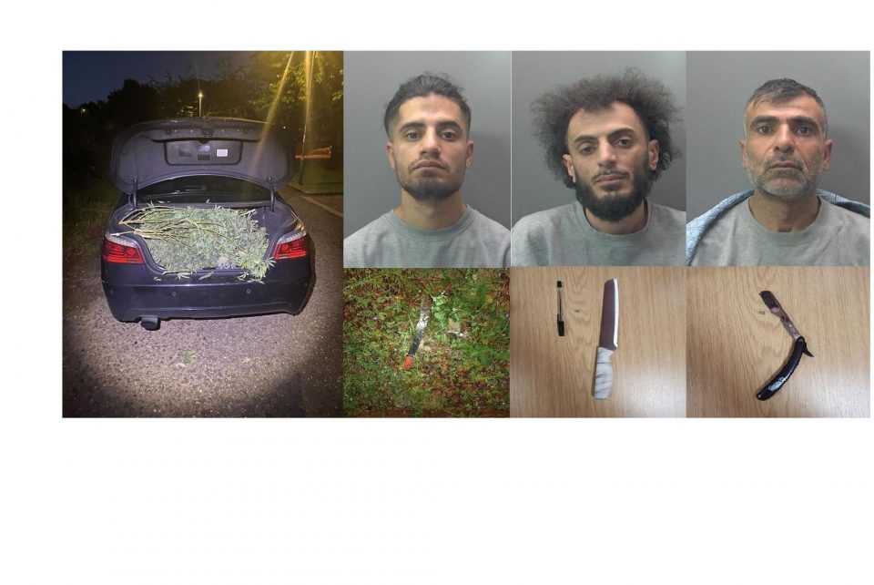 All three were charged with being in possession of offensive weapons, conspiracy to commit aggravated burglary including theft of cannabis and being in possession of cannabis with intent to supply.
