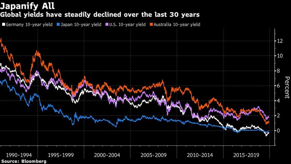 “Japanification is this one big thing that will take a really long time to untangle,” said Chris Rands, a money manager at Nikko Asset Management Ltd. in Sydney, which manages $224 billion globally. “The real problem is sitting in Europe — they’re sneezing and we’re catching the cold.”