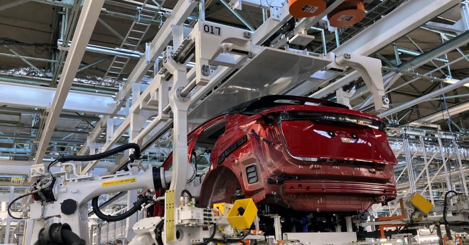 Nissan Motor Co., Ltd’s Universal Powertrain Mounting System with a two-layer pallet structure, compatible with EV, e-POWER (HV) and gasoline vehicles is pictured in Kawachi-gun, in Tochigi prefecture, Japan October 8, 2021. REUTERS/Maki Shiraki