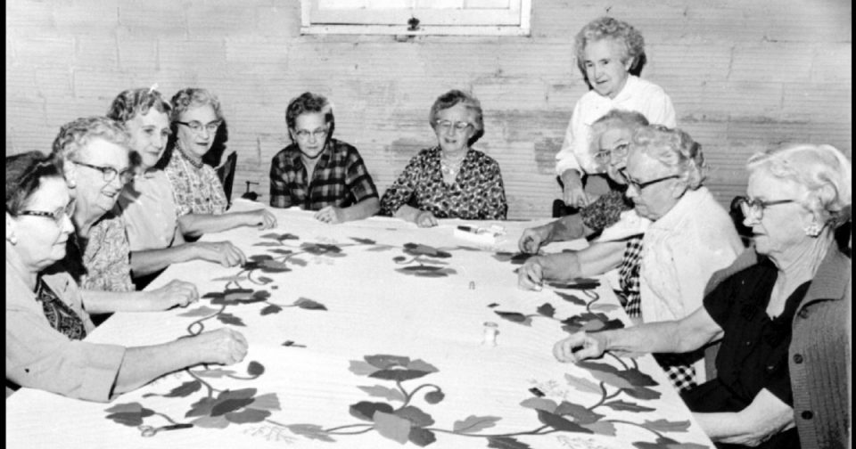 Women cut up fabric and sew them back together alone, however, “it really is efficient to have people as a group doing the quilt, all three layers, because it’s a big unwieldy object and it takes forever,” Brackman says, then adds: “Plus there’s just hanging out.”