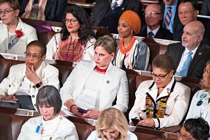 Hill flew out to D.C. for the State of the Union address, just over two weeks after her brother’s death (members have lifetime invitations to attend). Wearing suffragette white, as she had the year before, as well as her congressional pin, she walked down the halls of the Capitol with her former colleagues, passing reporters on the way. This seemed to have been the point. Hill was highly aware that her new path hinged on remaining relevant. “The easier thing is definitely not showing up, right?,” she told me the next day. “For me, personally, it feels really fucking shitty. Going there and being the person where it’s like, you’re not a member anymore, what are you doing here?”