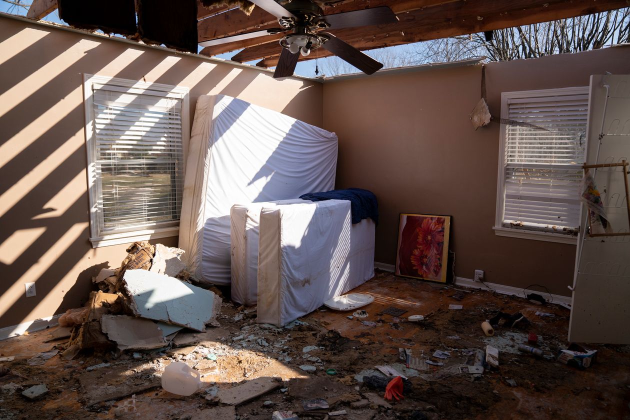 Eric Alford’s home, which he shared with his wife and other family members, was torn apart in Bowling Green, Ky. The family has moved into a motel.