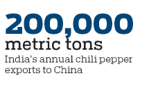 After cleaning, drying and packing, the chilies will be shipped from the port of Chennai, capital of the southern Indian state of Tamil Nadu, to Qinzhou Port in South China’s Guangxi Zhuang autonomous region. And then, the chilies will be sent by rail to Southwest China’s Chongqing Municipality.
