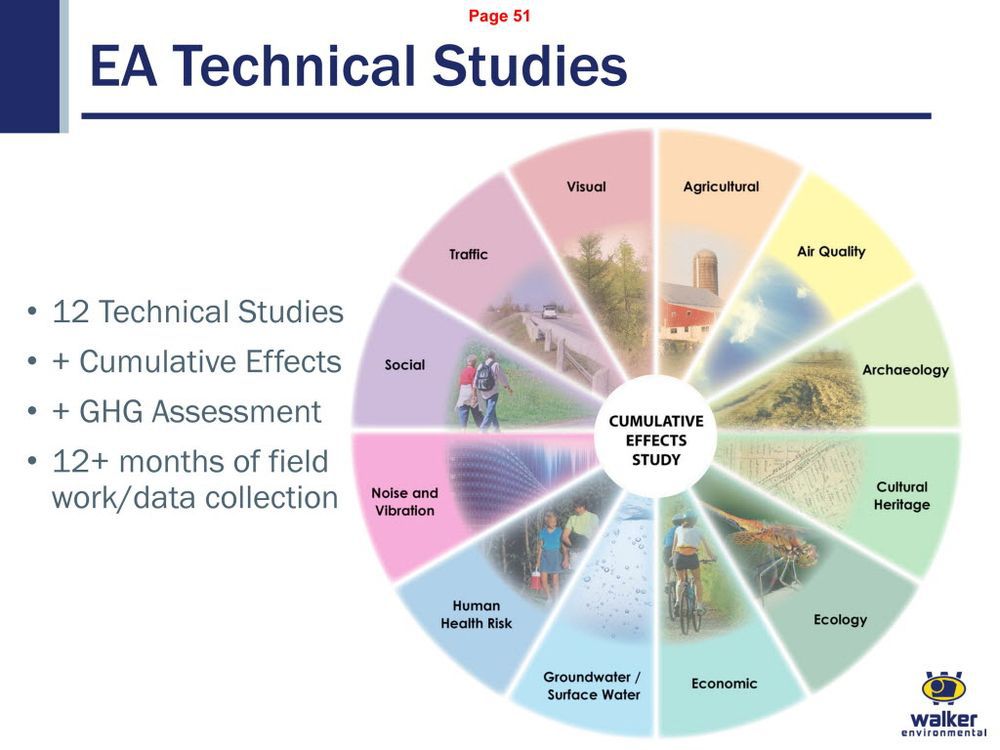 - Walker conducted 15 individual studies to produce the report, including detailed studies of traffic, human health, greenhouse-gas emissions, ground and surface water and agriculture.
