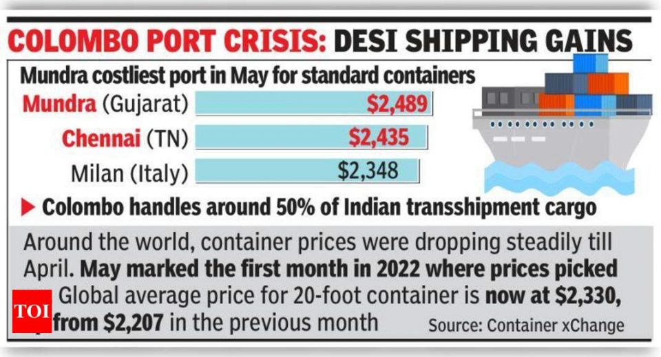 Mumbai: The Sri Lankan crisis could prove to be a windfall for India’s global trade logistics. India’s ports have already started to benefit from the disruptions caused at Colombo, with Mundra emerging as the costliest port globally for standard containers for the first time this year. In April, it was the third most expensive port.