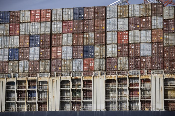 A container ship at the Port of Newark in New Jersey. The time it takes to deliver a container from China to U.S. destinations has lengthened as schedule reliability for shipping lines has deteriorated.