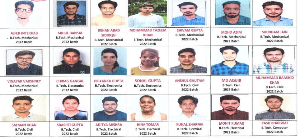 The hired students are Ajfer Intekhab (B. Tech Mechanical), Mihul Bansal (B. Tech Mechanical), Rehan Siddiqui (B. Tech Mechanical), Mohammad Tazeem Khan (B. Tech Mechanical), Shivam Gupta (B. Tech Mechanical), Mohd Azim (B. Tech Mechanical), Shubham Jain (B. Tech Mechanical), Vinayak Varshney (B. Tech Mechanical), Chirag Gangal (B. Tech Electronics), Priyanka Gupta (B. Tech Electronics), Sonal Gupta (B. Tech Electronics), Anshul Gautam (B. Tech Civil), MD Aquib (B. Tech Civil), Muhammad Raashid Khan (B. Tech Civil), Salman Khan (B. Tech Civil), Srashti Gupta (B. Tech Civil), Aditya Mishra (B. Tech Electrical), Hina Tomar (B. Tech Electrical), Kunal Sharma (B. Tech Electrical), Mohit Kumar (B. Tech Electrical) and Yash Bharwaj (B. Tech Computer).