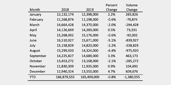 Nevertheless, December marked the strongest month of shipments in 2019, as shipments increased 4.7% compared to 2018.
