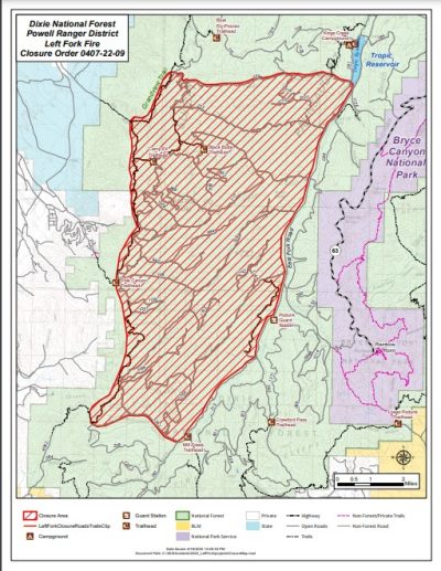 The United States Department of Agriculture Forest Service, the Bureau of Land Management, the Utah Division of Fire, Forestry and State Lands, Bryce Canyon National Park, Zion National Park and Garfield County Sheriff’s Office are working the fire.