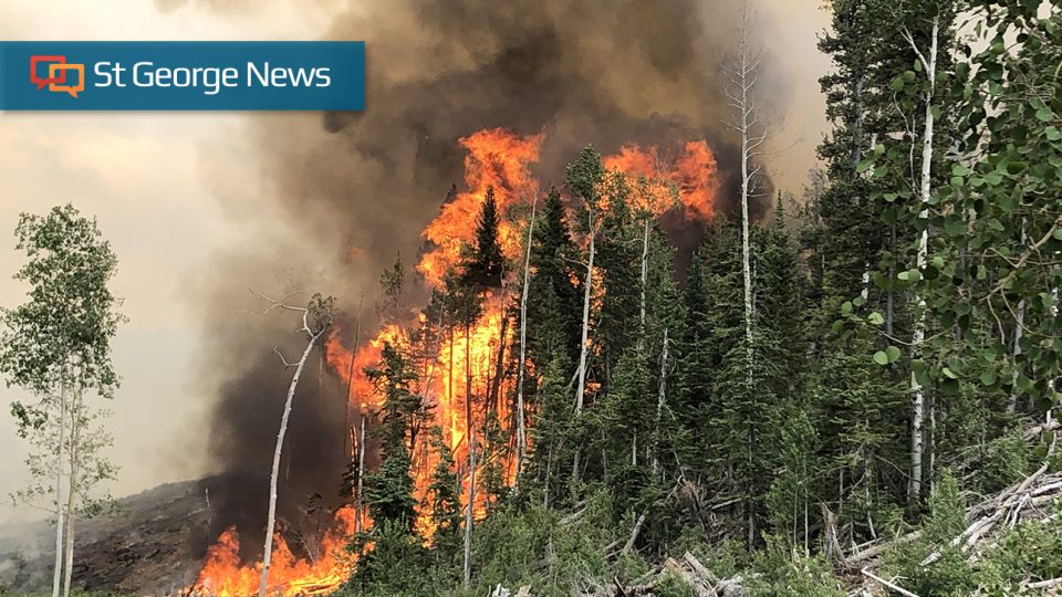 A rapidly burning wildfire in Dixie National Forest, near Bryce Canyon National Park, Utah, date not specified | Photo courtesy of the Utah Division of Forestry, Fire and State Lands, St. George News