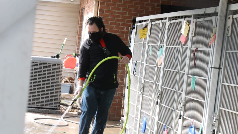 “Today it was noted a shelter attendant was using a shop vacuum to aid in cleaning the clogged drain in the indoor kennel room. The drain was full of liquid and the electrical cord was lying in the water. Management was immediately advised and the cord was attached by zip ties high on the kennels so it was not in the water or in reach of the dogs. The moving of the electrical cord was done during the inspection today.”