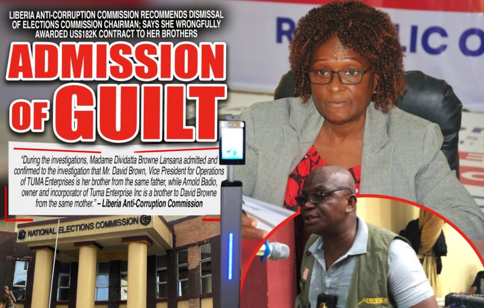 Monrovia – The Liberia Anti-Corruption Commission has recommended the dismissal of the National Elections Commission (NEC) Chairperson, Madam Davidetta Browne-Lansanah and the Head of the Procurement Committee of NEC for alleged corruption.