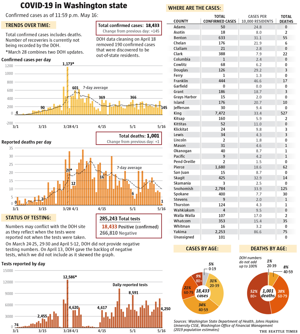 COVID-19 deaths topped 1,000 in our state over the weekend, with more than half of those in King County, the state’s most populous.
