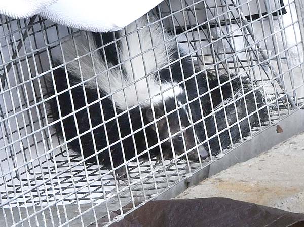 A maintenance worker was sent to the management office to pick up a cat trap from the Maui Humane Society already on hand. Baited with a can of tuna, the trap was placed near the skunk, but the animal did not enter until later in the morning.
