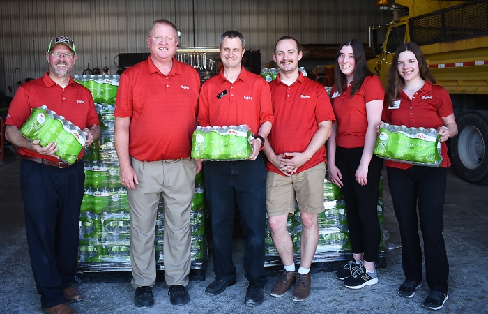 Pictured from left to right: local Hy-Vee employees Roger Townsend, Jim Anderson, Tim Schipull, Connor Fiddler, Haylie Roberts and Kennedi Cran unloaded water and distributed it to local residents after Dakota City was hit with a boil order due to a chlorine pump failure at the water plant on Friday, June 17. The city was back in compliance by Tuesday and the boil order was lifted. See other photos from the effort in this week’s Humboldt Independent and online at www.humboldtnews.com. Independent photo.