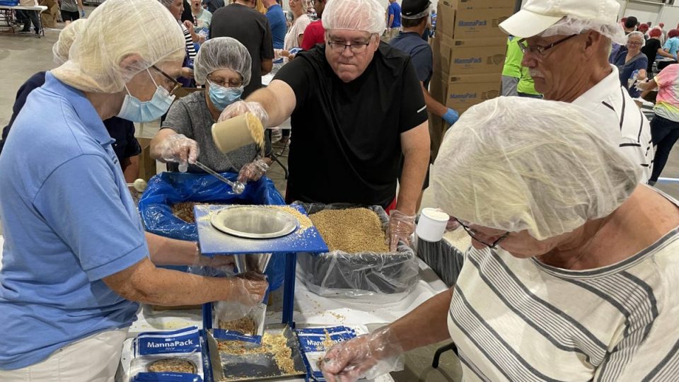Feed My Starving Children mobile pack site came annually to the area before COVID-19. This year, it’s back Aug. 24-27 at the Michiana Event Center in Shipshewana, Ind. It is large enough to host the groups who arrived to fill Manna Pack meals.