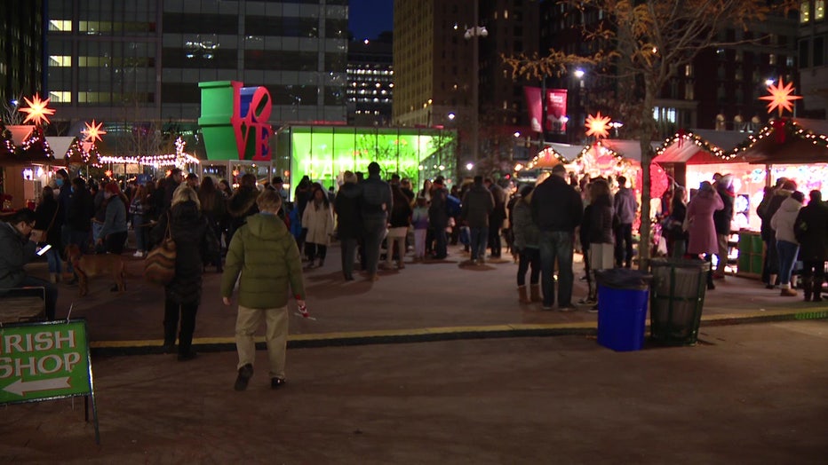 Shoppers hunt for unique last minute Christmas gifts at Christmas Village in LOVE Park.
