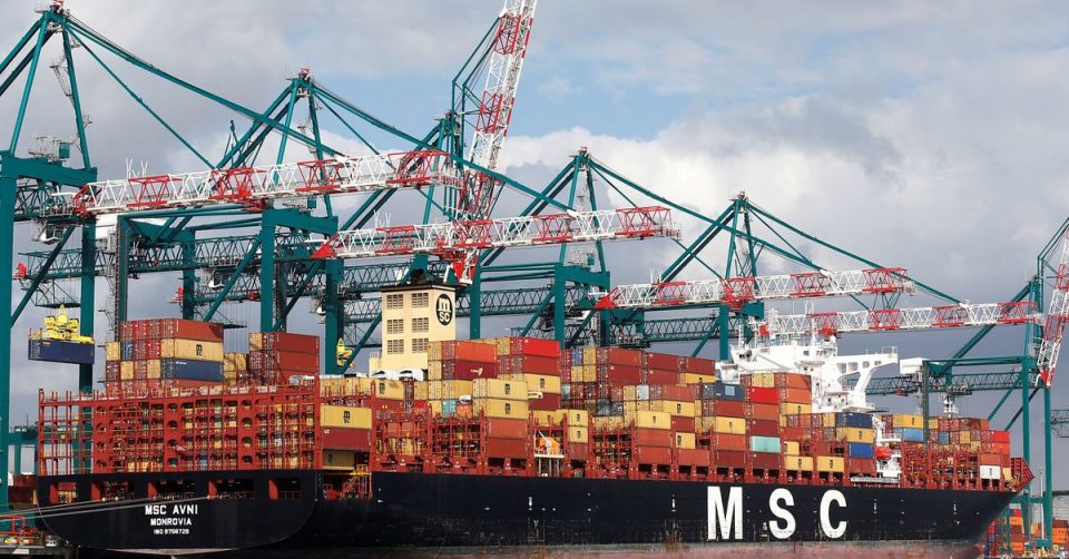 A container ship of the Mediterranean Shipping Company S.A. (MSC) is seen next to cranes at the San Antonio port in Chile August 6, 2019. REUTERS/Rodrigo Garrido