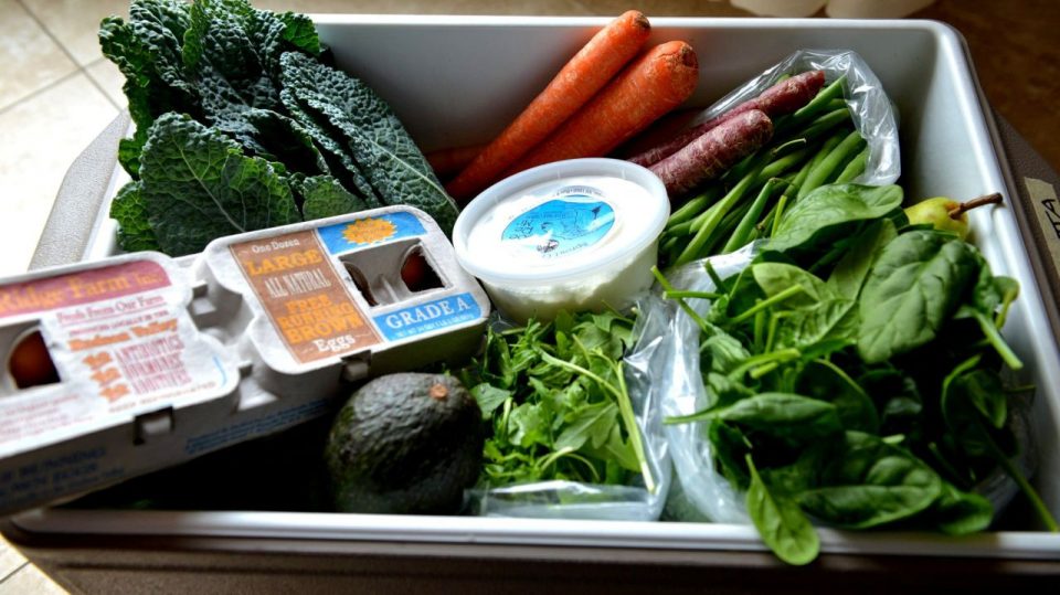 On the menu: A “mischief” box, containing 12 different types of fruits and vegetables and meant for 1 to 2 people is $22; a “madness” box, 14 types, for 3 to 5 people, is $35. In winter, expect to find organic apples, potatoes, squash, sweet potatoes, broccoli, cabbage, citrus, lettuces/leafy greens, onions, and / or peppers.