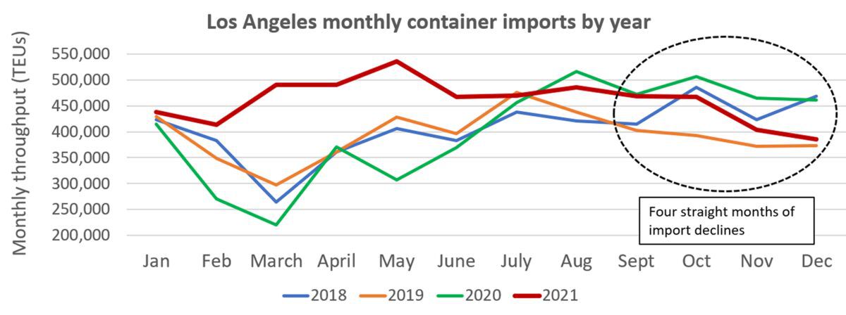 Los Angeles’ import slide mirrors the trend at neighboring Long Beach, which reported December results on Jan. 19.