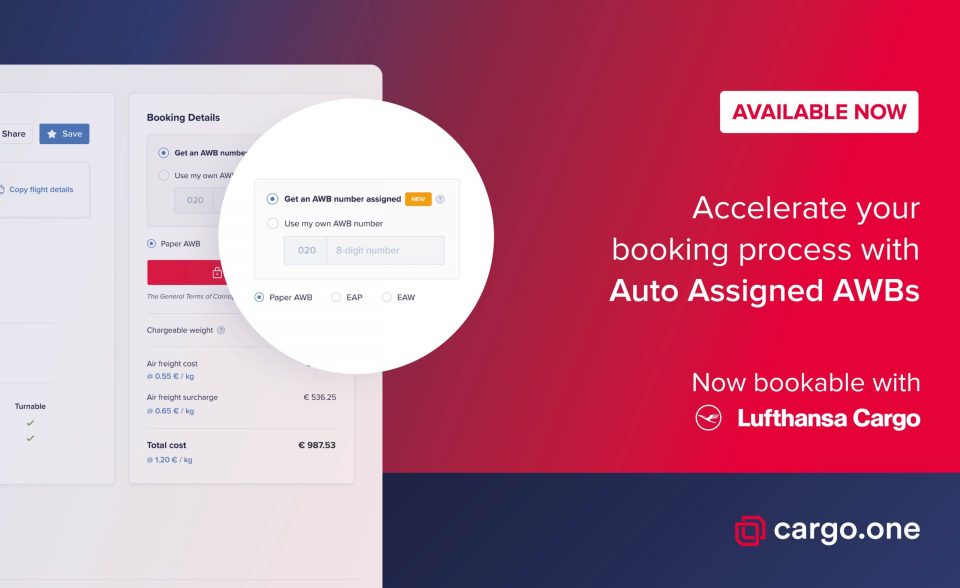 Lufthansa Cargo is the first of cargo.one’s airline partners to facilitate Auto Assigned AWBs in bookings.