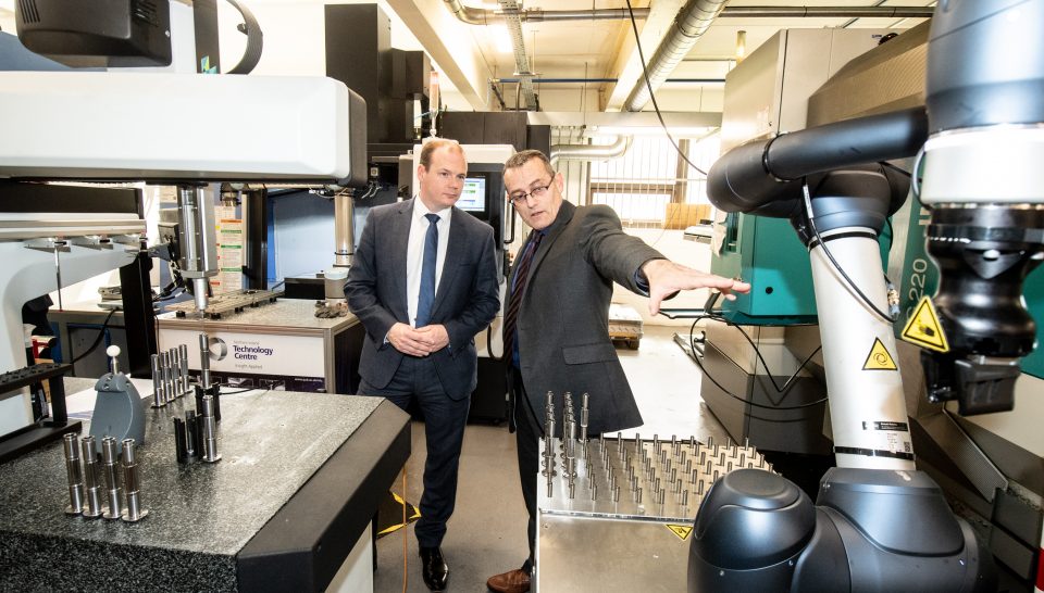 Economy Minister Gordon Lyons pictured with Rory Collins of the Northern Ireland Technology Centre at Queen’s University Belfast.