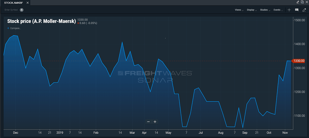 A.P. Moller – Maersk (APMM) said its ocean container shipping division generated freight revenues of $6.373 million in the quarter ended September 30, down 0.9% compared to a year earlier. However, earnings before interest, taxes, depreciation and amortization (EBITDA) climbed 12.6% in the period to $1.268 million.