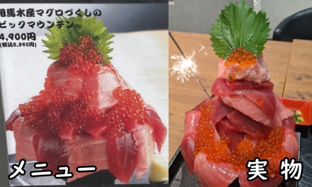 As he waited, though, Mr. Sato tried to keep his expectations from getting too high. After all, sometimes restaurants have gorgeous-looking food photos in their menus, only for the real thing to not quite measure up. He was happy to learn, though, that Maguro Soma Suisan is very honest about what you’re getting.