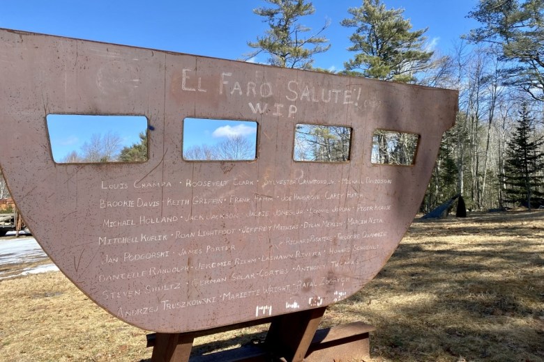 The sculpture currently taking shape in Sawyer’s studio is a memorial to the crew members of the El Faro, a U.S.-flagged cargo ship that sank on Oct. 1, 2015, taking with it all 33 souls aboard. Among the people who died when the El Faro sank ― including the ships’ captain ― were five graduates of Maine Maritime Academy, four of whom were also Mainers.