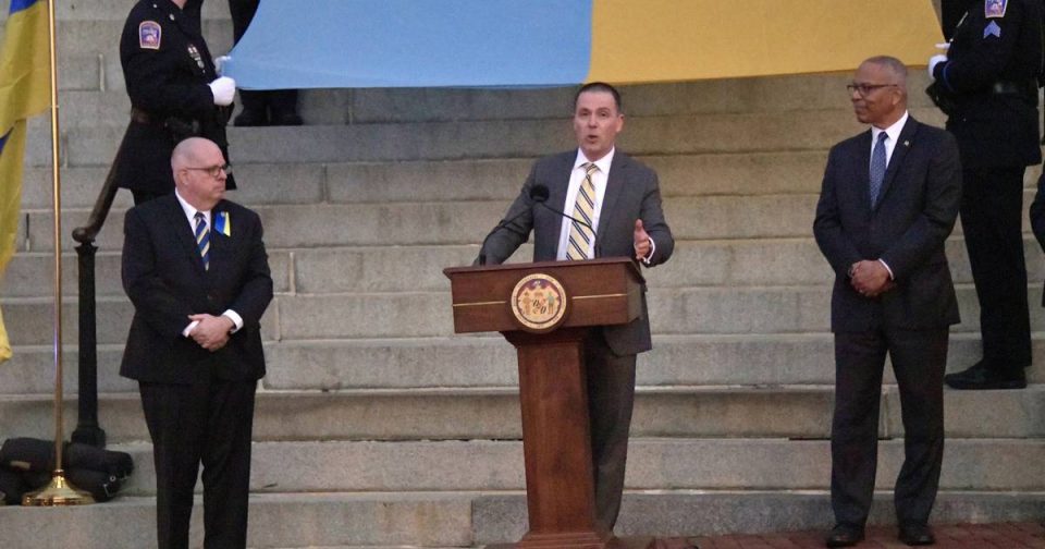 The governor was joined for the announcement at a warehouse in Hanover, Maryland, by Yaroslav Brisiuck, deputy chief of mission for the Embassy of Ukraine.