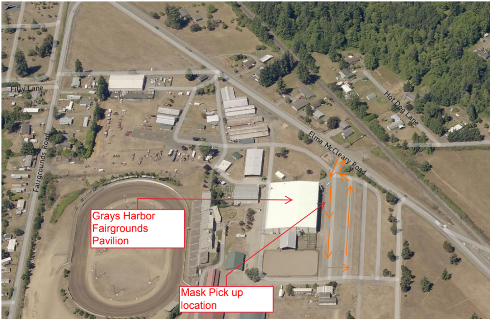 Grays Harbor County Emergency Operations Center will be hosting a drive-up mask distribution event this Thursday, July 14, 2020 from 10 AM to 2 PM. Grays Harbor County Emergency Operations Center and Grays Harbor Community Emergency Response Team (CERT) will be at the Grays Harbor County Fairgrounds in Elma distributing two (2) free, reusable face masks for every individual that is below the 200% Federal Poverty Level in Washington State.