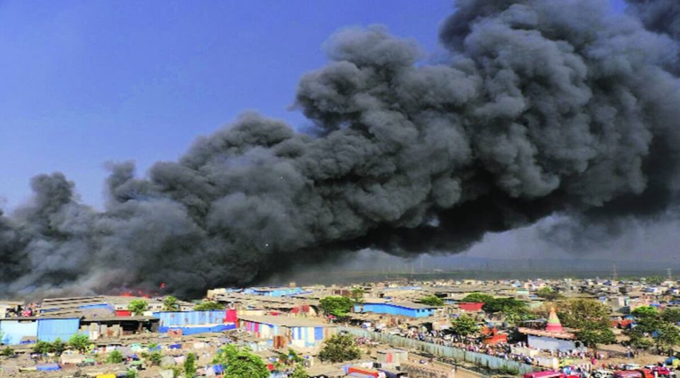 A MASSIVE fire broke out at a scrapyard in Mumbai’s Mankhurd area in the eastern suburbs, on Friday afternoon. By evening, heavy smoke had engulfed the area, as the Mumbai Fire Brigade struggled to control the blaze. A fire station officer was injured in the incident.