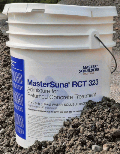 Master Builders Solutions has formulated a new powdered polymer admixture to gel returned concrete mixes, rapidly curtail workability and strength development, then ease handling after they are dispensed from a mixer truck. MasterSuna Returned Concrete Treatment (RCT) 323 Admixture provides ready mixed producers a cost-effective tool to manage a pervasive material handling and disposal challenge.