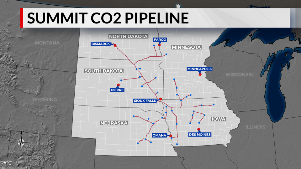 Iowa and southern Minnesota will also have miles of CO2 pipeline in their states.