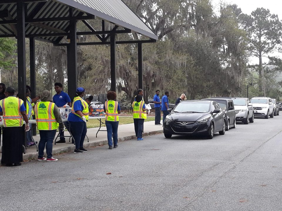 “We’ve prepared 1,700 meals for this location [Southwest Elementary],” said Kimberly Hancock, SCCPSS executive director for elementary/K-8 schools. “We are prepared here with more meals if needed, or we can transport some meals to other distribution sites. We are just glad to be able to serve the children.”
