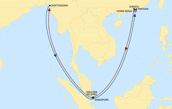 The service rotation will be: Hong Kong, Yantian, Shekou, Singapore, Tanjung Pelepas, Chattogram, Singapore, Tanjung Pelepas, Hong Kong.