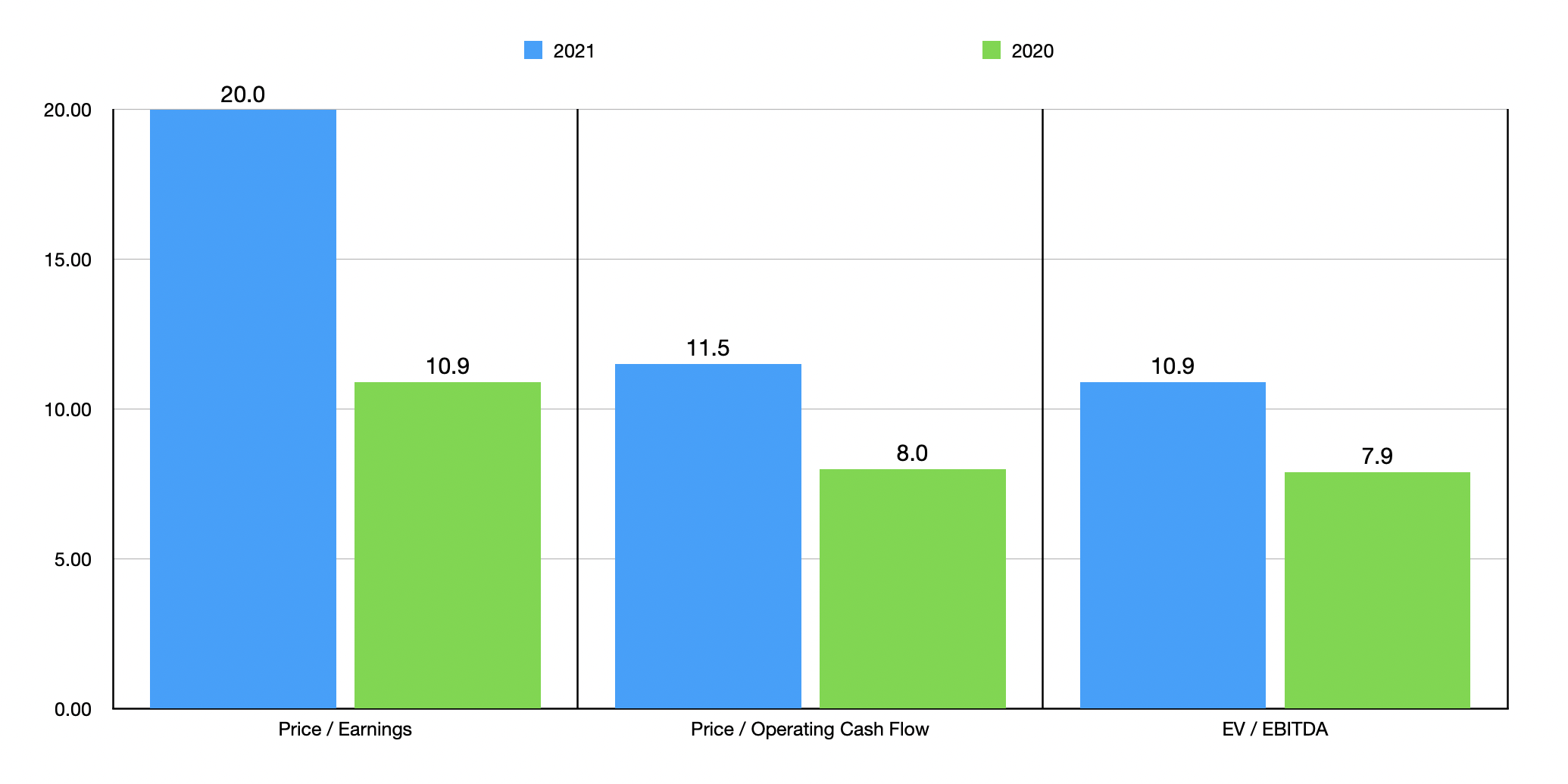 This decline in profitability caused by inflationary and supply chain issues makes valuing the company a bit tricky. The good news is that, even if these conditions remain, the business does not look to be terribly priced. Using the 2021 figures for the firm, shares are trading at a price to earnings multiple of 20. The price to adjusted operating cash flow multiple is 11.5. And the EV to EBITDA multiple of the company is 10.9. Now if we see performance improve back to at least the levels experienced in 2020, shares could see a respectable amount of upside. For instance, using data from that year, the company’s multiples would be 10.9, 8, and 7.9, respectively.