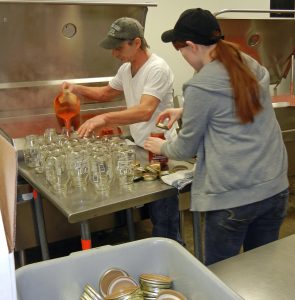 Tony Figaretti, Jr., president of Figaretti Manufacturing, Inc., and Brittany Berisford bottle sauce at his Peters Run Road plant. Supply chain snarls have made it difficult to consistently get key elements ranging from dried basil to jar lids. (Photo by Nora Edinger)