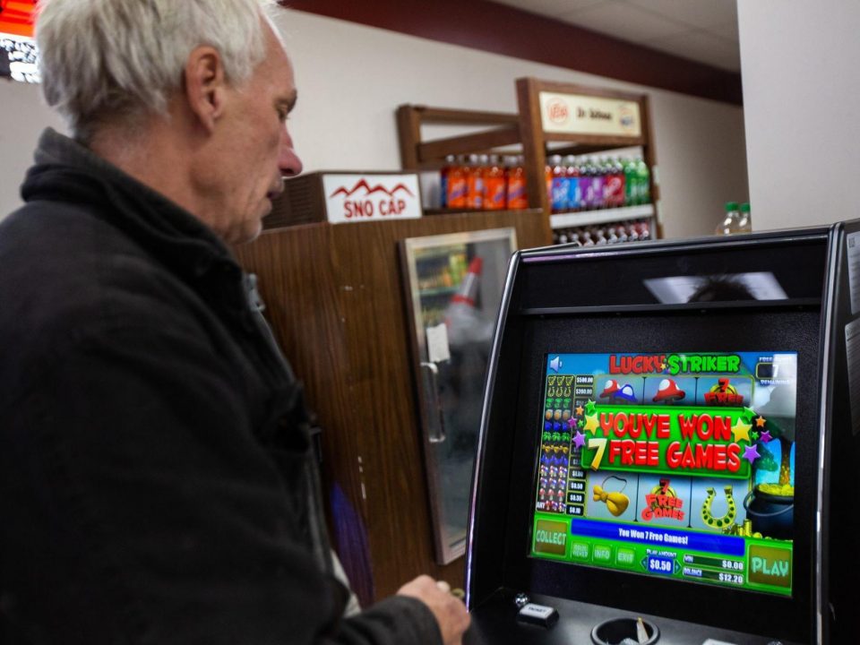 Dave McCall plays a digital slot machine in St. Louis’ South Public Market last year. (Image: Troy Stolt/St. Louis Post-Dispatch)