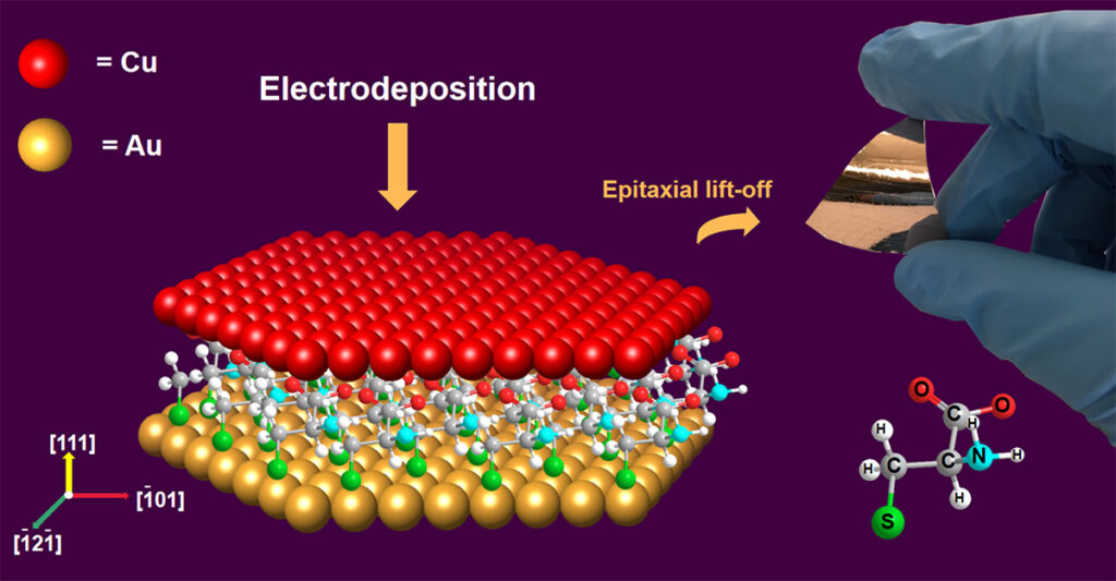 Missouri S&T materials scientists have been creating thin films at the nano scale using inorganic materials for years. But recently, they determined that highly ordered copper thin films can be crystallized directly on a one-molecule-thick layer of organic material rather than on inorganic substrates. The films are excellent candidates for use as underlying substances for solar cells and high-temperature superconductors, says Dr. Jay Switzer, Chancellor’s Professor and Curators’ Distinguished Professor emeritus of chemistry, who is principal investigator of the project. “Like the way seashells, bones or teeth are formed, we’ve found a way to give the copper films the right level of crystalline order and durability for their applications,” Switzer says.