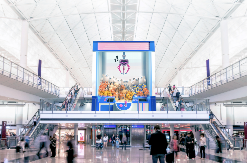 Each installation is strategically positioned to enhance the passenger experience at key moments in the airport journey. In the “Meeters and Greeters” Hall, departing and arriving travelers are welcomed by a Crystal Elevator that reveals snapshots of Hong Kong culture. The Waterfall Gardens encourage moments of repose with a lush interactive ecosystem, while at the departure gates, Totems of Joy combine real-time flight information with creative content to offer each departing traveler a ‘selfie-friendly’ send-off.