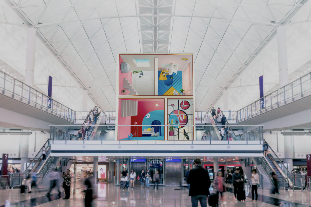 On July 1st, 2022 Hong Kong International Airport unveiled a reimagined passenger experience at Terminal 1, featuring three multimedia activations by Moment Factory. The expansion and revitalization of the terminal invites visitors to celebrate the spirit of Hong Kong throughout the terminal.