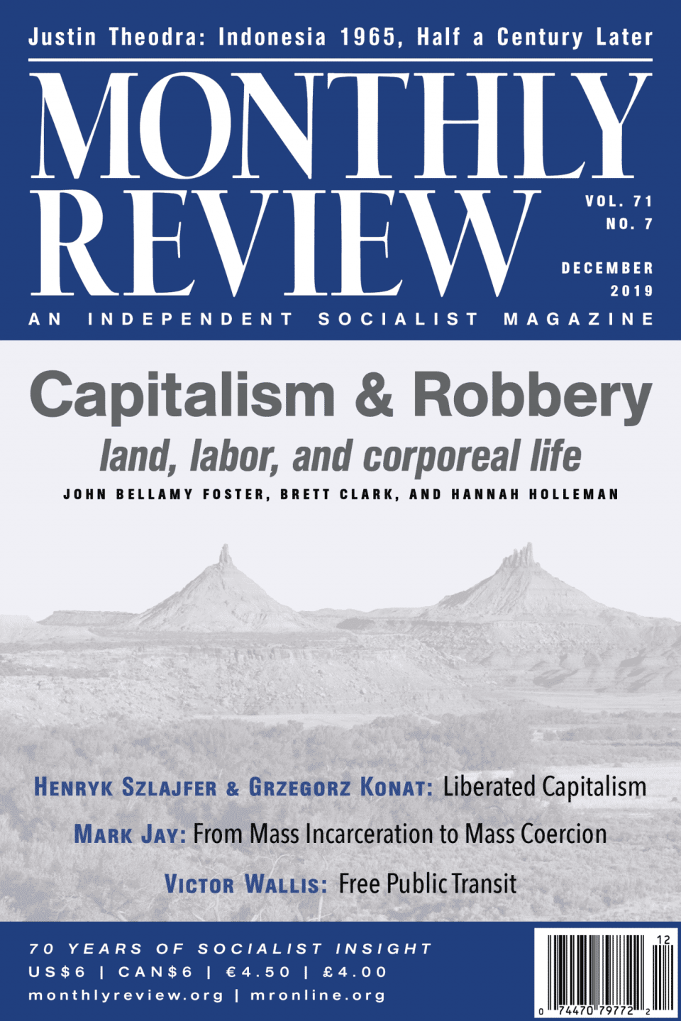It is the coevolution of economic and ecological contradictions under global monopoly-finance capital that defines the epochal historical crisis of our times. When the next economic downturn occurs, the answer has to be, at a minimum, some sort of Peoples’ Green New Deal aimed at transforming the entire production system in ways that achieve the dual objectives of a just transition away from neoliberal capitalism (and eventually capitalism itself) and the creation of a more sustainable fossil fuel-free ecological order. The scariest thing of all is those who, representing the viewpoint of capital, try to tell us that we need to place top priority on propping up the existing irrational financial order, while giving far less attention to the struggle over climate change—all so as to keep the existing system of economic exploitation, robbery, and ecological destruction going. The only real answer to the epochal crisis of our times is to recognize that the problem is not an abstractly economic or ecological one; rather, the essence of the challenge is one of transcending the contemporary capitalist modality that has brought the world to the edge of absolute and total disaster.
