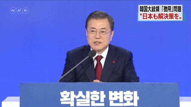 South Korean President Moon Jae-in has asked Japan to present its own proposal in response to his country’s overture to resolve the issue of wartime labor.